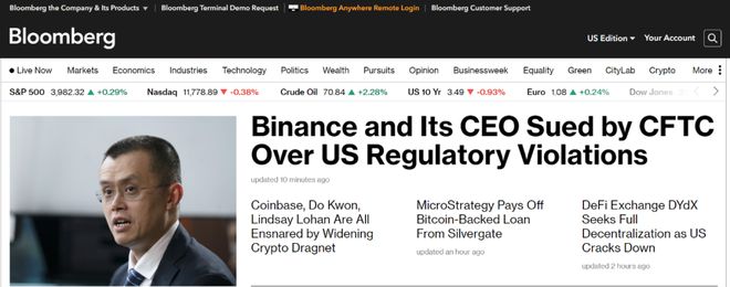 就连彭博社的头版头条都留给了CZ ,而且还带出来了其它一条被忽视的新闻,DYDX其实也在面临着一系列可能发生的麻烦。当然只要是中心化的金融衍生品服务就很难逃离美国的监管。从这次CFTC的起诉中可以看到,是因为Binance没有注册相关的资质。而且今天已经在芝加哥联邦法院提起了诉讼。
