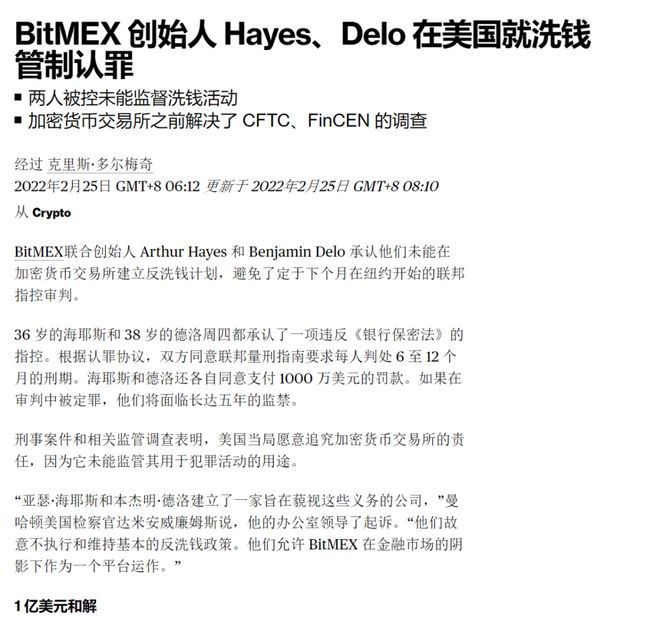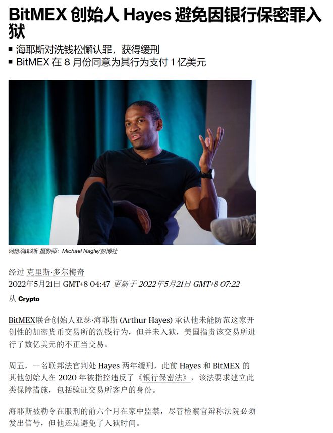 看上去确实挺吓人的,是实际上呢,上一次受到这种待遇的也是币圈的传奇人物,Bitmex的CEO @CryptoHayes ,Bitmex可以算的上是币市杠杆合约的缔造者了,也受到了CFTC的打击,目前Arthur Hayes已经在纽约法庭对违反美国银行保密法表示认罪,美国司法部将 BitMEX 定性为x钱平台。并要求罚款和监禁。