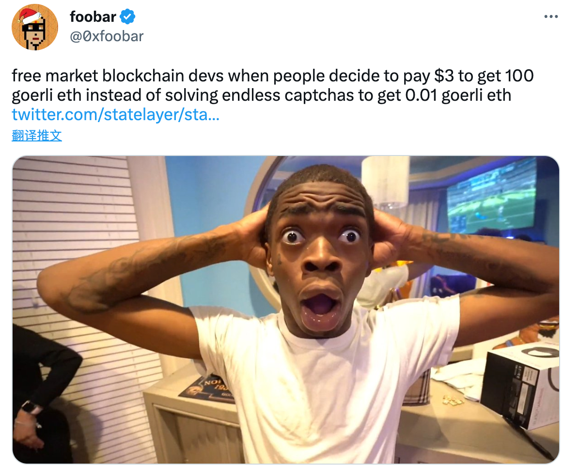 尽管受到批评,但 Testnet Bridge 也拥有支持者,KOL 和开发人员 foobar 就是其中之一。他表示,“(他们说)‘测试网 ETH 应该是免费的。’好吧,但也没见你给我一些。你们真正的意思是,‘获取测试网 ETH 应该通过费时的行为。’你们的说教没有用,人们会进行权衡。”