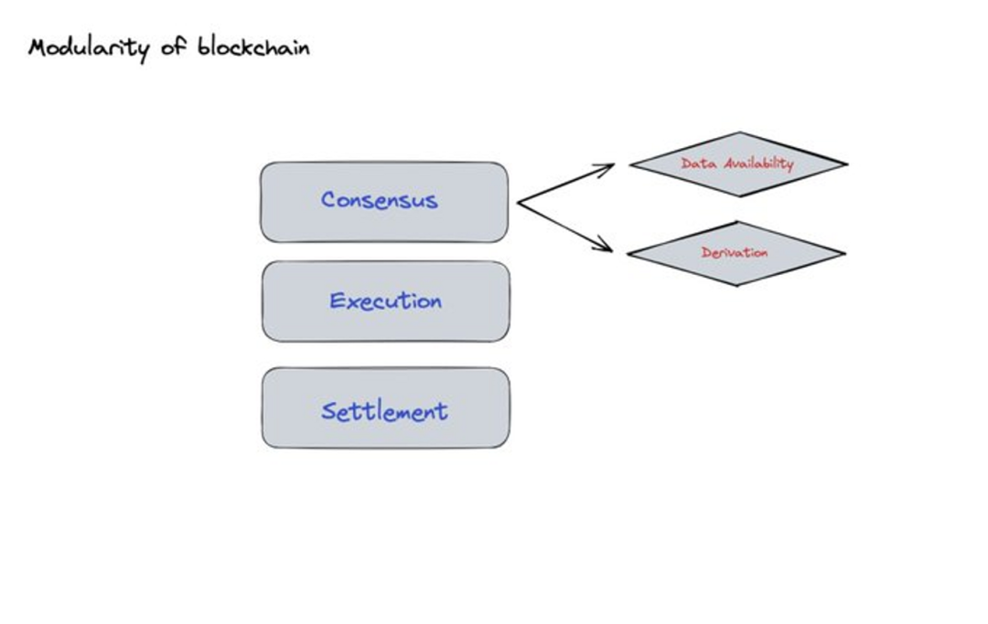而区块链的模块化,就是将执行交易、记账、同步账本几件事分开交给几个人来做,不需要一个人从头到尾做完,又累又慢。