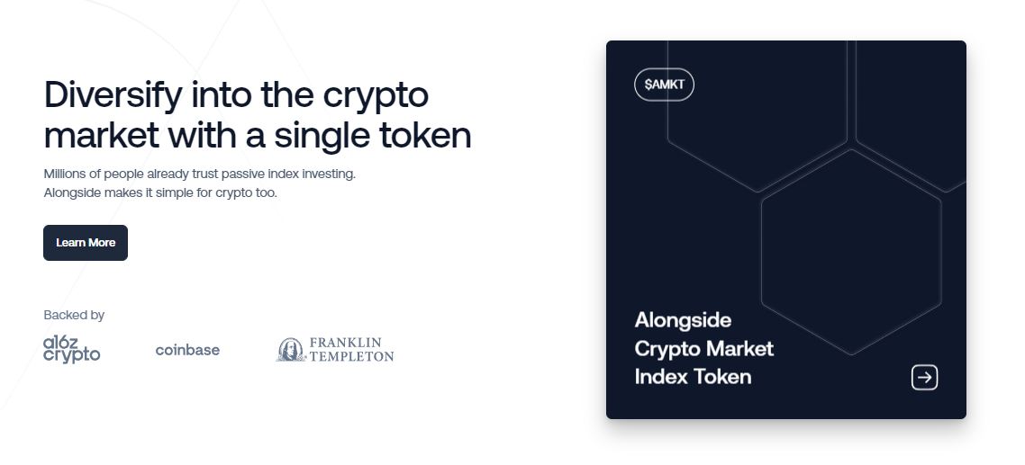 Alongside 是一个加密指数平台,允许投资者通过指数投资加密货币,就像你通过 SP500 或纳斯达克投资 TradFi 一样。你无需购买单个加密资产,而是购买指数代币,就像购买追踪 SP500 的 ETH 一样。