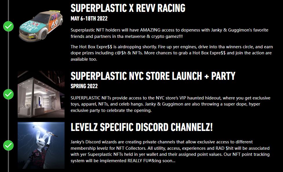 Superplastic 是一个全球娱乐和产品品牌,它已与世界上最知名的艺术家、品牌和名人合作,为社区带来 3D NFT 角色、NFT 产品以及虚拟活动。看起来这个项目提供了 NFT 化的角色,这些角色有可能成为电视节目明星。