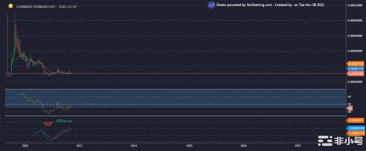 Shiba Inu 价格预测:SHIB/USD 每周K线走势图显示价格